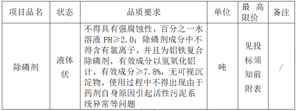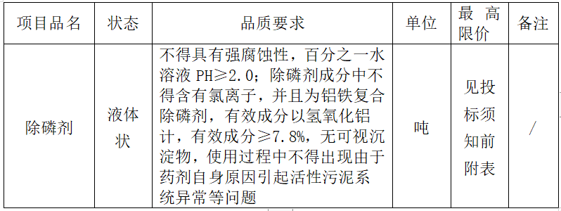 2020年度水處理藥劑(除磷劑)采購項目